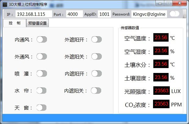 該平臺通過3D技術(shù)進(jìn)行智能農(nóng)業(yè)大棚的虛擬仿真。系統(tǒng)提供溫濕度、水分、光照等參數(shù)的監(jiān)測和遮陽簾、排風(fēng)扇、灌溉系統(tǒng)的自動控制功能。通過控制策略的設(shè)定,可模擬如何讓作物獲得最佳的生長環(huán)境。通過該系統(tǒng)學(xué)生可熟悉傳感器的使用、WSN應(yīng)用程序的開發(fā)。